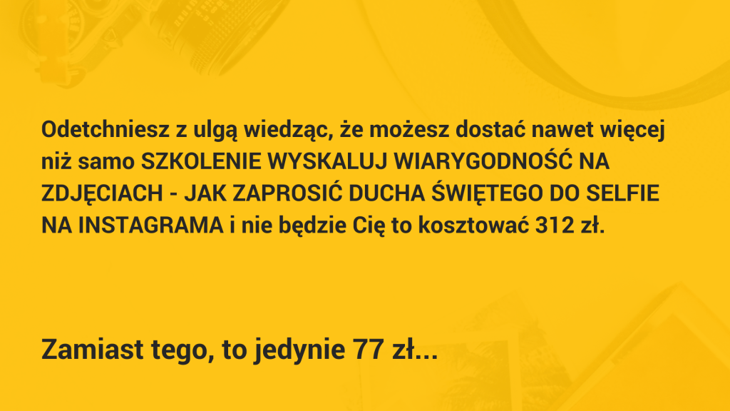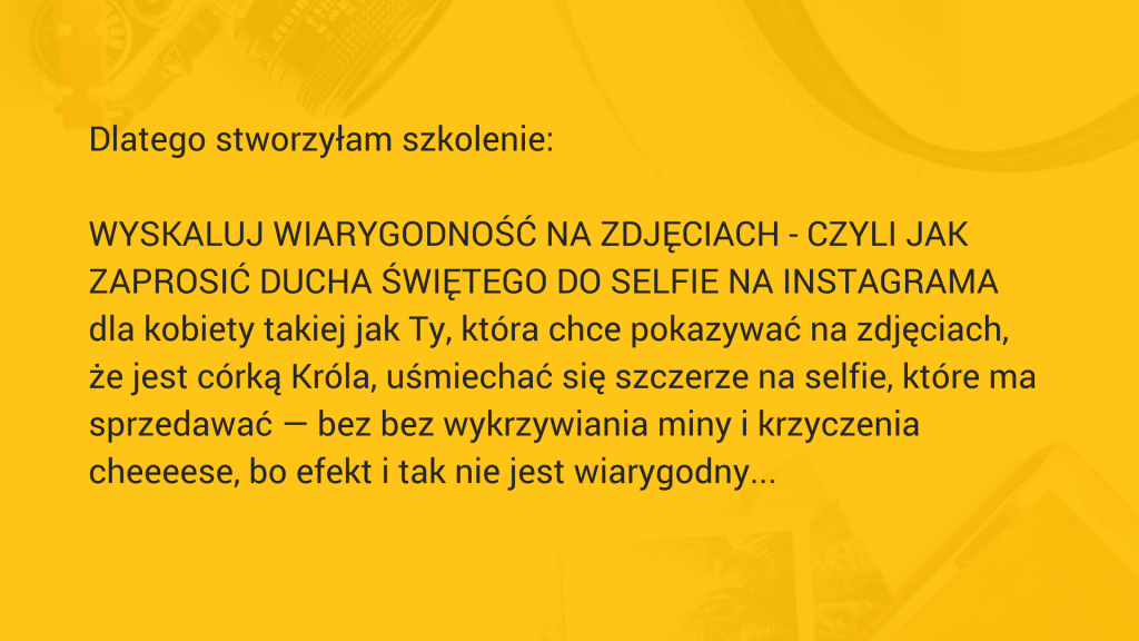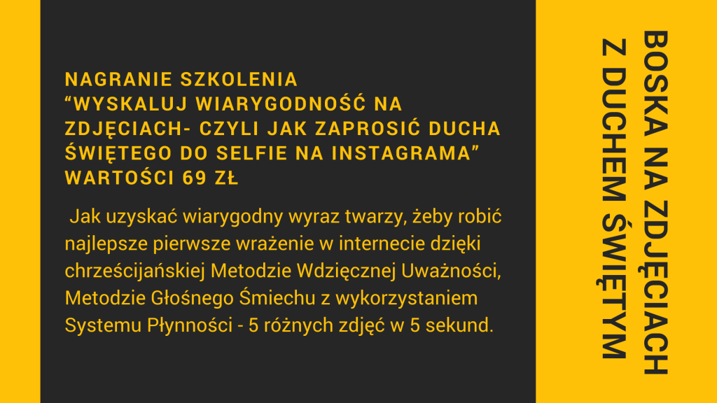 KUPUJĘ SZKOLENIE WYSKALUJ WIARYGODNOŚĆ NA ZDJĘCIACH – JAK ZAPROSIĆ DUCHA ŚWIĘTEGO DO SELFIE NA INSTAGRAMA TERAZ ZA JEDYNE 34 ZŁ